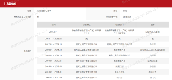 基金业协会网站显示,友安私募成立于2025年7月14日,2025年9月29日完成私募证券管理人登记。公司注册资本为1000万元,宋昆在公司持股51%。友安私募注册地址在广东省珠海市香洲区,办公地址在上海市浦东新区,目前有5名全职员工。