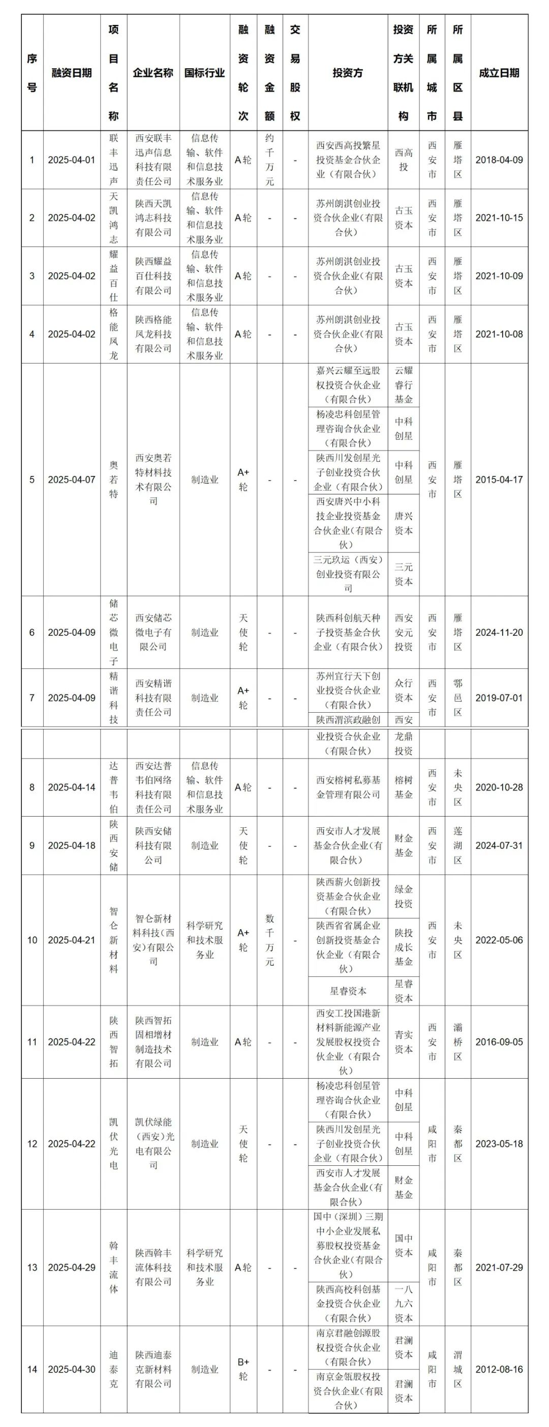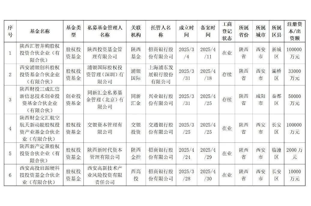 表2 陕西省新增股权、创业投资基金备案统计表(2025年4月)