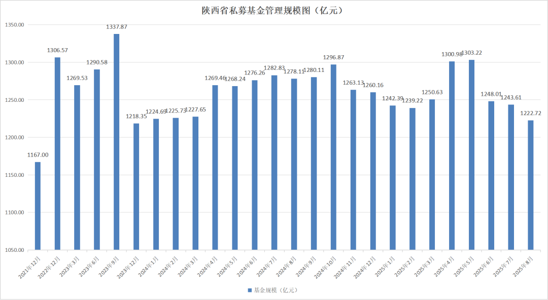 截至2025年8月末,按照注册地口径统计,陕西省私募基金管理机构246家,总管理基金数量1195只,管理基金规模1253.82亿元。