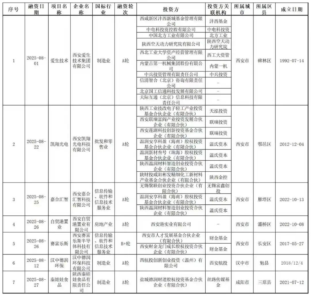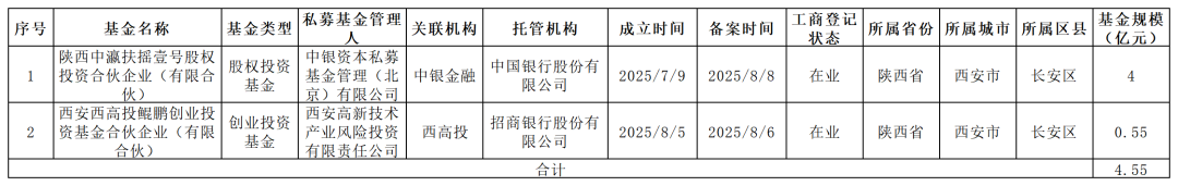 表2 陕西省新增股权、创业投资基金备案统计表(2025年8月)