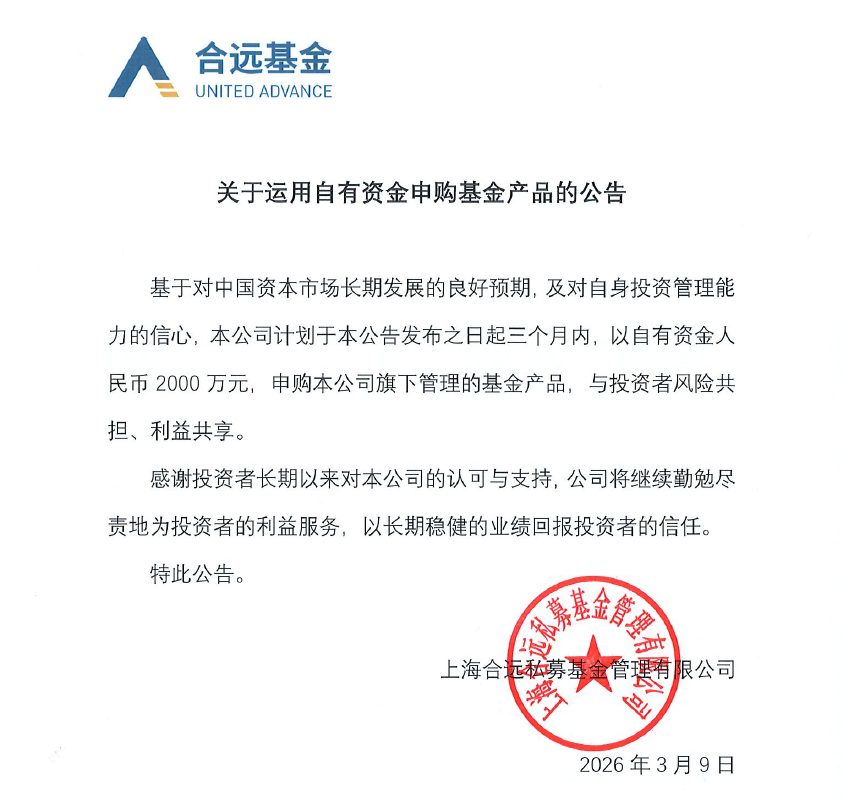 近日,老牌私募汉和资本发布公告称,公司计划使用自有资金1000万元,再次追加申购公司所管理的私募基金产品。无独有偶,3月9日,合远基金也曾发布公告称,基于对中国资本市场长期发展的良好预期,公司计划以自有资金人民币2000万元申购公司旗下管理的基金产品,足见震荡市下头部私募对市场后市的乐观预期。