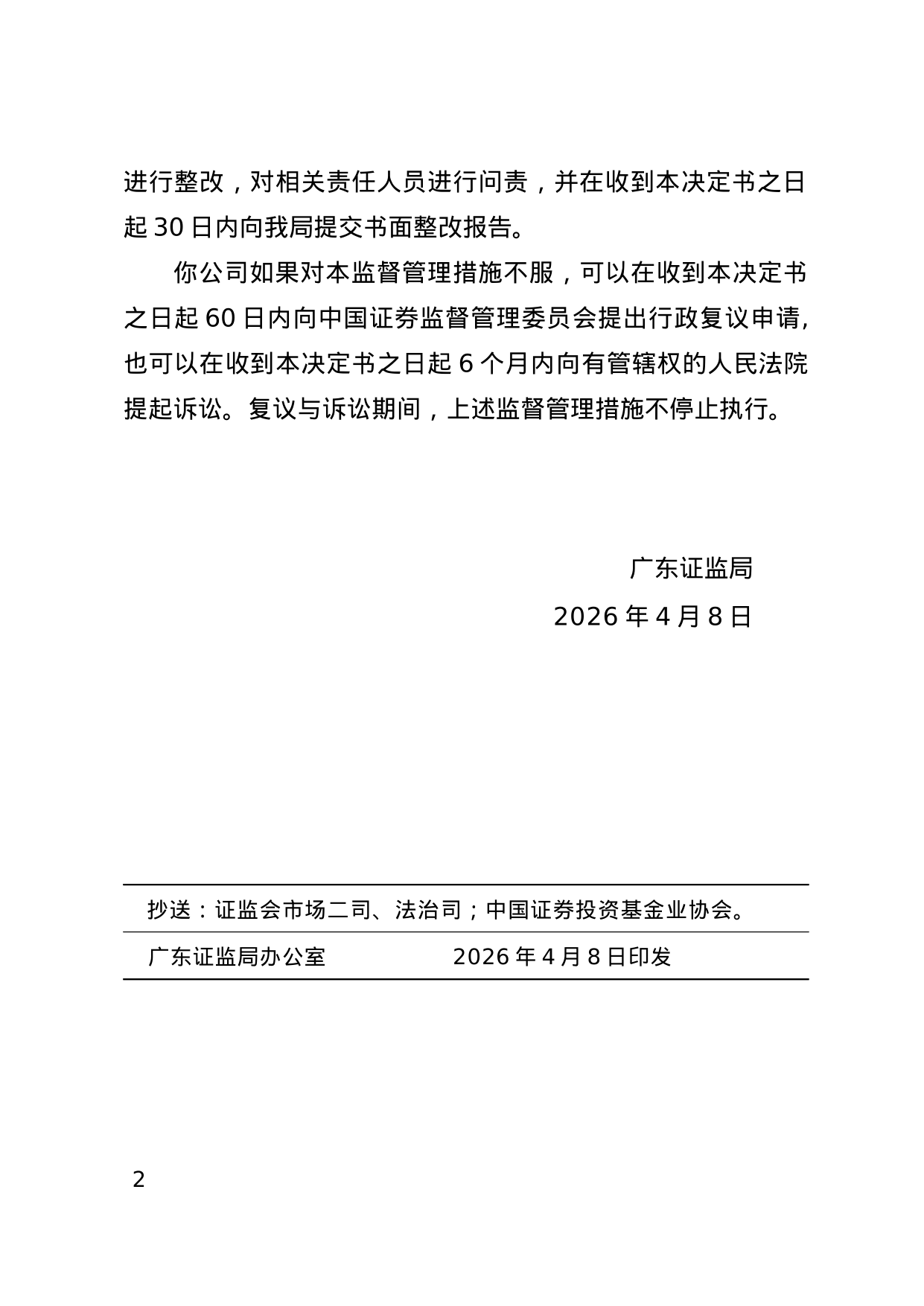 对此,广东证监局决定对恒正嘉华(广东)私募基金管理有限公司采取责令改正的行政监管措施。